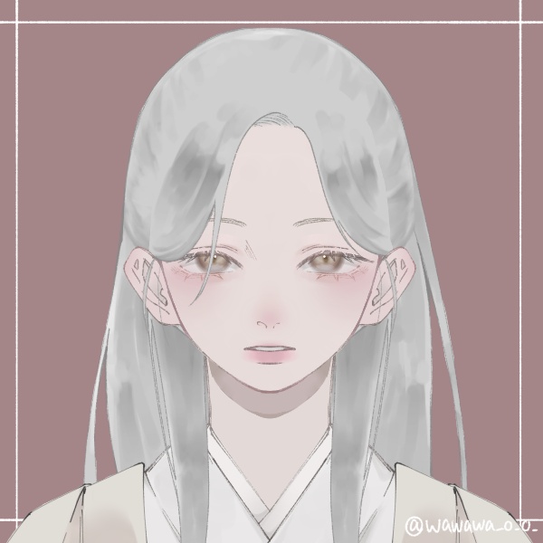직모 백장발(~허리) 반묶음, 처진 눈매의 적갈색 눈동자